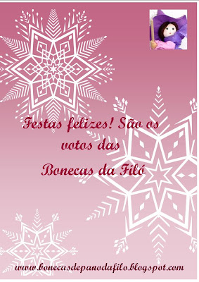 Pelo muito que as nossas clientes tem representado para nós, queremos dedicar a todas os nossos melhores votos, de um Natal e Ano Novo, repleto de realizações, Amor paz saude e muito carinho. Que nós possamos continuar na emoção de levar emoção, de desejar felicidades, de reconciliar sentimentos, de encurtar distâncias através das nossas mensagens.Estamos felizes com o nosso trabalho, pois a cada dia fazemos novos amigos, a cada dia aparecem mais pessoas encantadoras como as clientes das Bonecas da Filó. Desejamos um Feliz Natal e um 2011, repleto de conquistas, é o que nós vos desejamos.